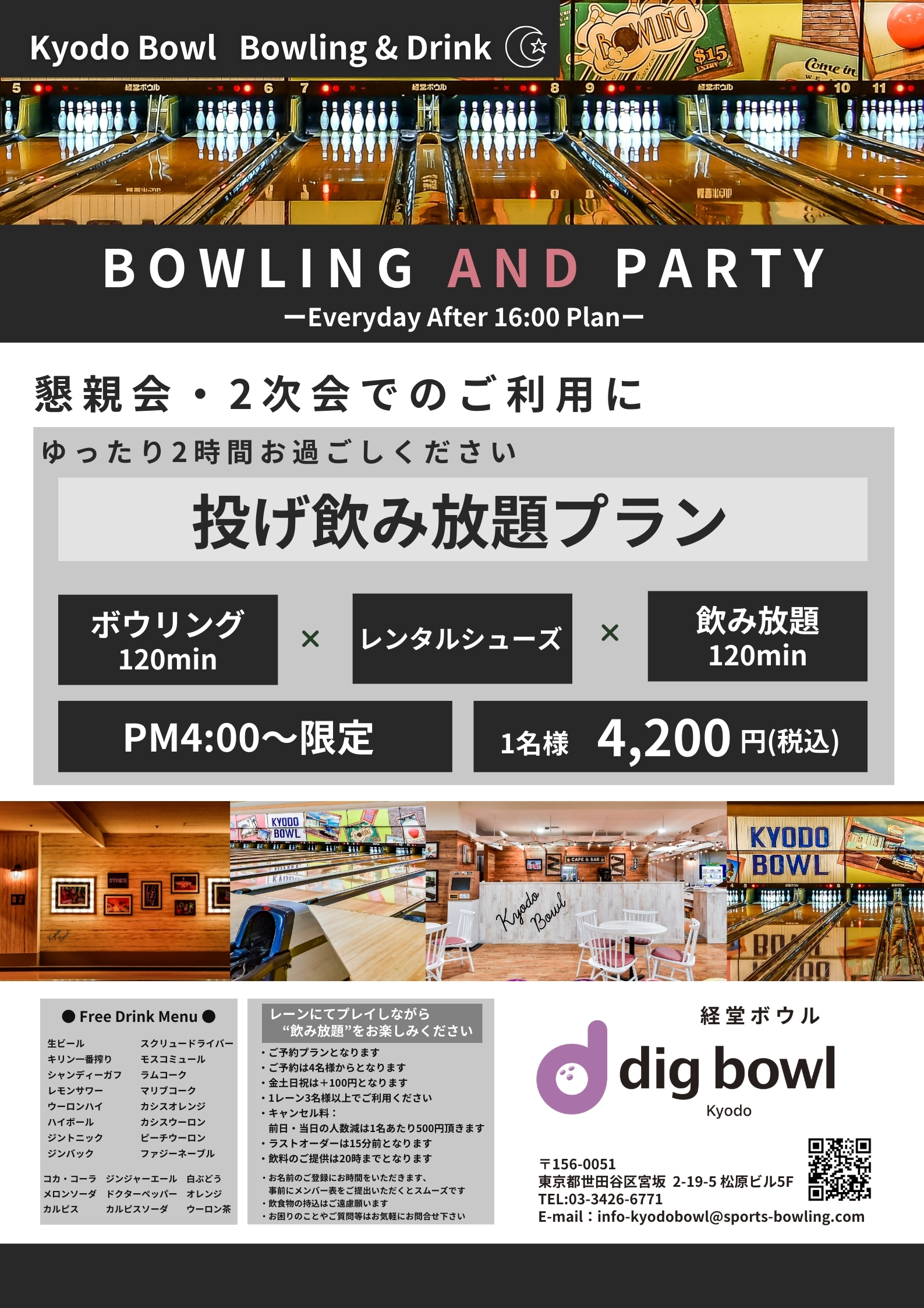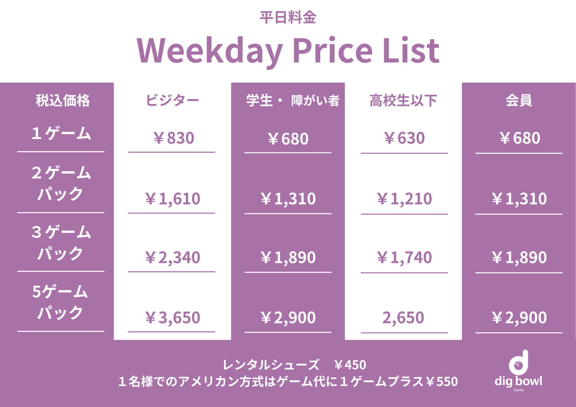 *レーン移動や、ごゆっくりゲームをされたい方は上記時間にプラス15分-20分みていただくと安心です