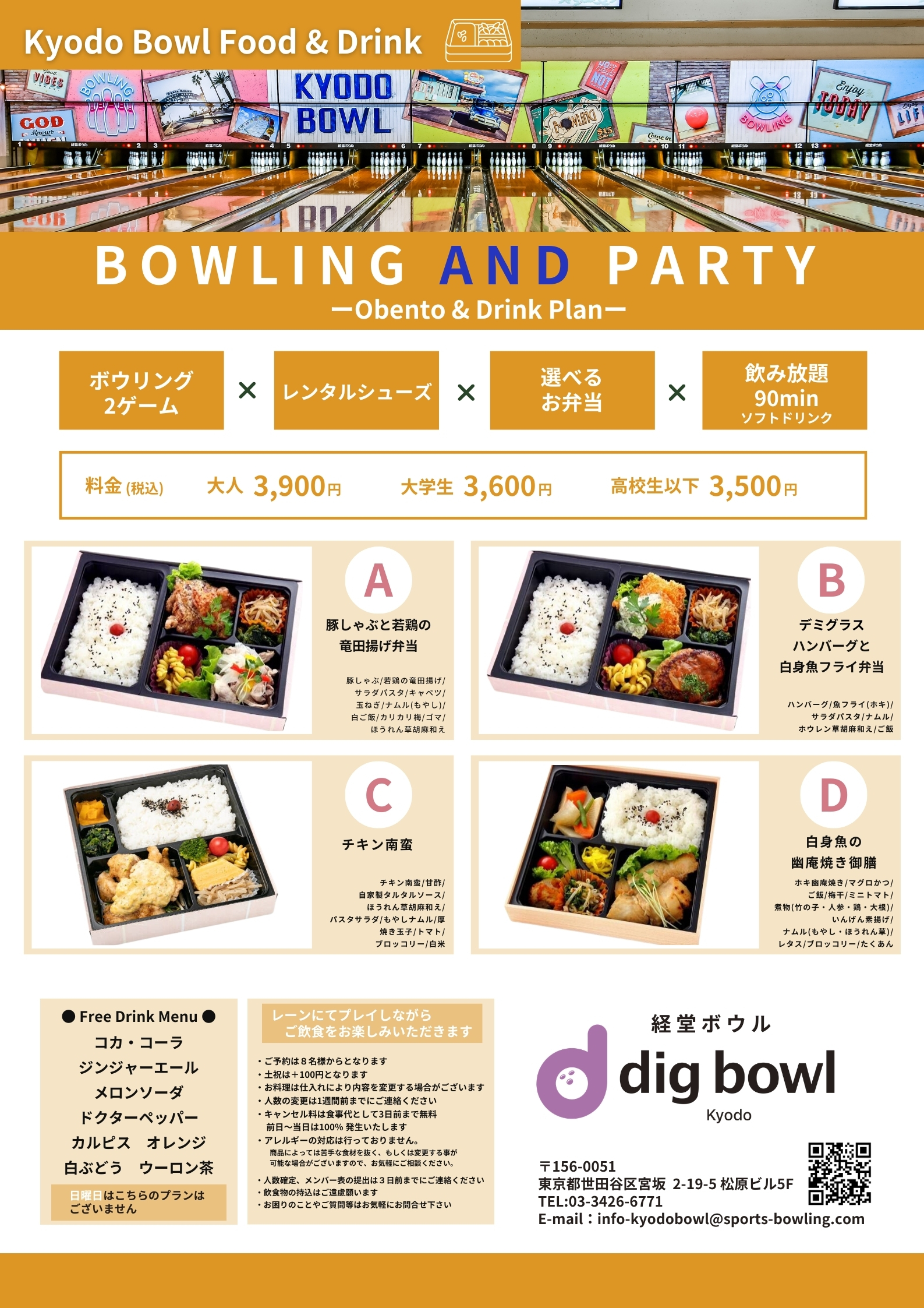・キャンセル料は食事代として3日前まで無料 前日~当日は100% 発生いたします