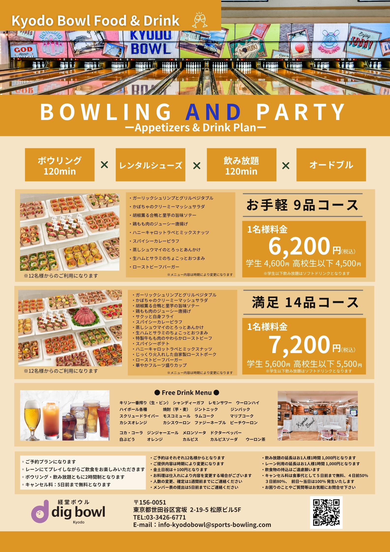・飲食物の持込はご遠慮願います・キャンセル料は食事代として5日前まで無料、4日前50%、3日前80%、前日∼当日は100%発生いたします