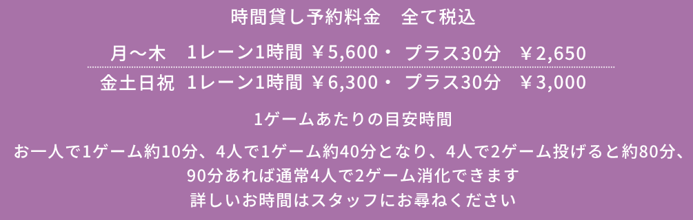 *時間貸し予約はゲーム数ではなくレーン数×時間となります